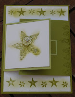 My second try is a christmas card with Itty Bitty Betty - candy can slide. I cut out a hole in front page of the card. I filled the hole with a foil envelope filled with white embossing powder to give the whole the impression of snow - somilar to shaker cards. So when you shake the card you have the impression that snow is falling down.